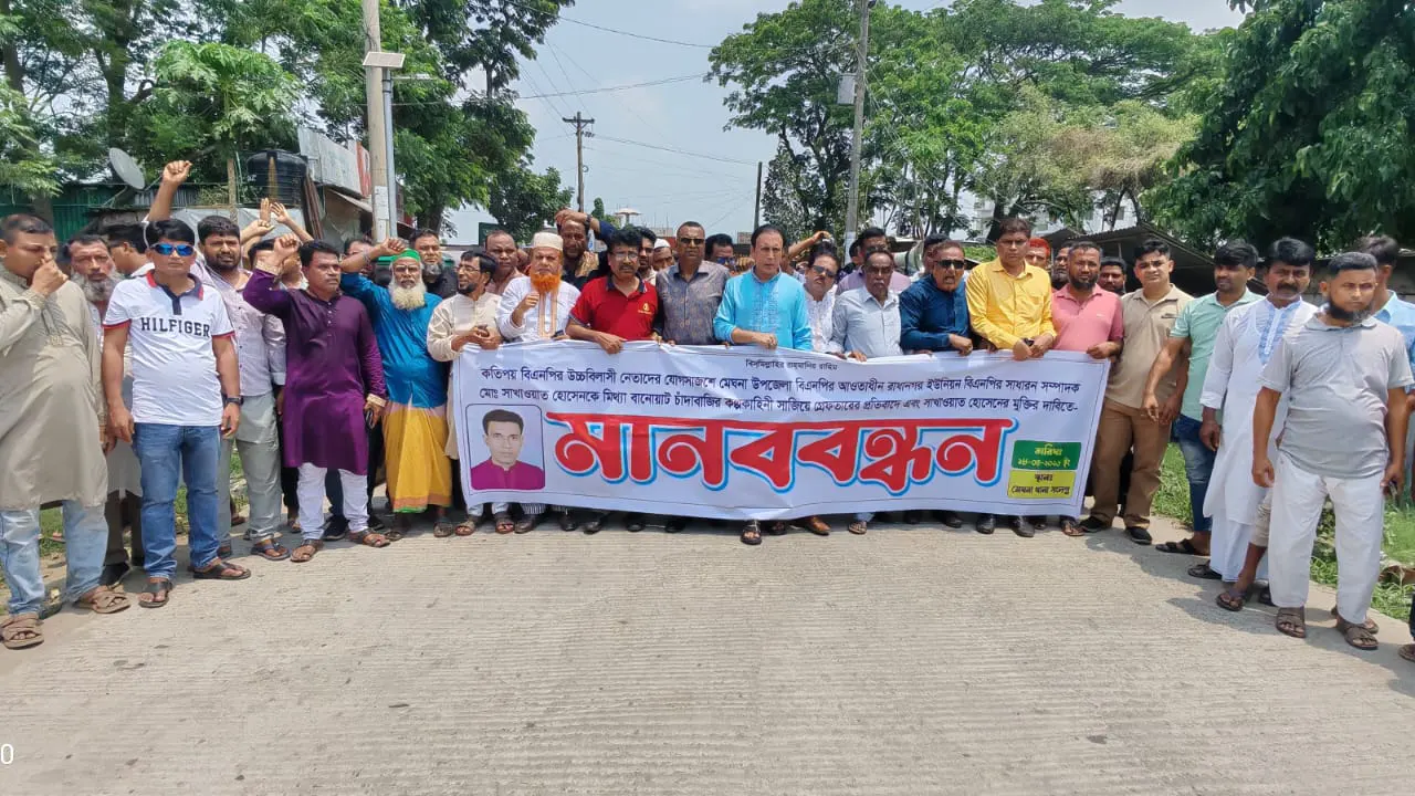 ইউপি সদস্য সাখাওয়াত হোসেনের মুক্তির দাবিতে বিক্ষোভ